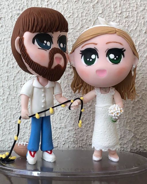 Gostamos de fazer parte destes momentos e oferecemos uma linha de “topo de bolo” personalizados como côr dos olhos, detalhes do vestido, detalhes do cabelo da noiva, hobby do noivo.